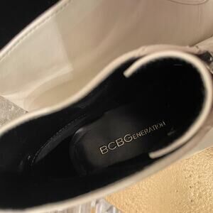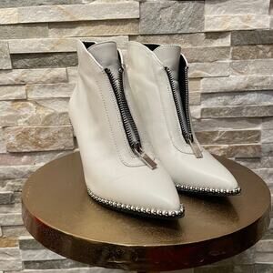 BCBGeneration Ivory White Leather Studded Zip Heeled Booties | Y2K Style, 5M