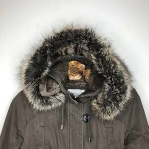 BCBGeneration Jacket Utility Parka Mocha Waist Cinch Faux Fur Hood Medium