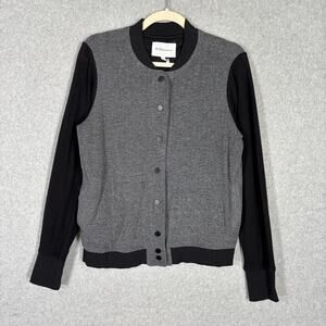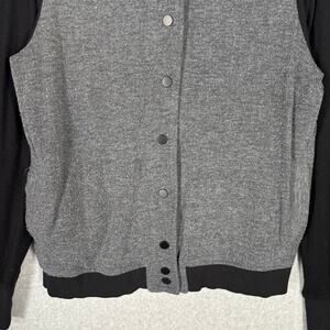 BCBGeneration Jacket Womens Medium Gray Black Varsity Bomber Knit Snap Varsity*