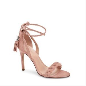 This suede sandal delivers signature style with its flirty tassel lace-ups, braided accents, and a soaring stiletto heel. Name of shoe: jessica