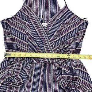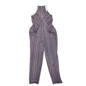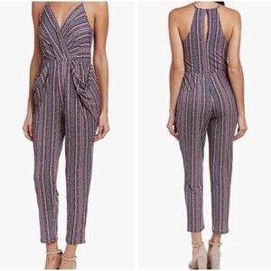 - Description: BCBGeneration Jumpsuit Women M Crossover V-neck Draped Pocket Striped Boho Beach