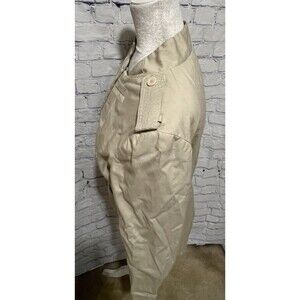 The BCBGeneration Khaki Utility Jacket is a stylish and versatile outerwear piece for women in size medium. Made of lightweight cotton, this short-length jacket features long sleeves and a hook & loop closure for easy wear. With a basic jacket style and practical pockets, this khaki-colored jacket is perfect for everyday wear and can be easily paired with various outfits for a trendy look. Perfect for adding a touch of chic to any wardrobe, this BCBGeneration jacket is a must-have for the fashion-forward woman. 18 inches pit to pit and 22 to 24 inches long. Smoke free home.