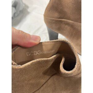 BCBGeneration Kleina Bootie in Tan Suede Stacked Heel Back Zipper Size 8