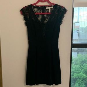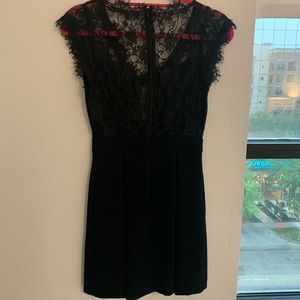 Black cocktail dress with beautiful eyelash lace insert. Fits true to size! No visible signs of wear.