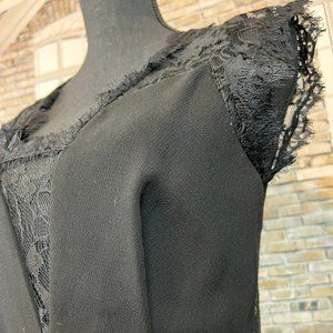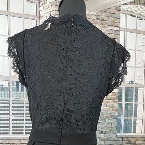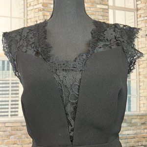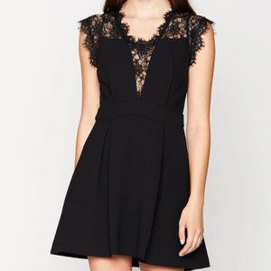 Skater dress by BCBGeneration Textured woven fabric with plunge neckline. Eyelash lace inserts box-pleat skirt zip-back fastening. Fit-and-flare shape. Size 4.