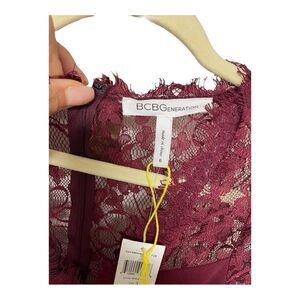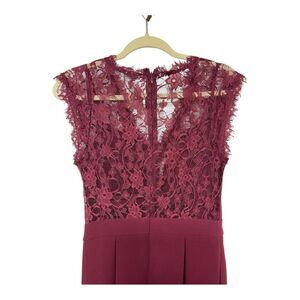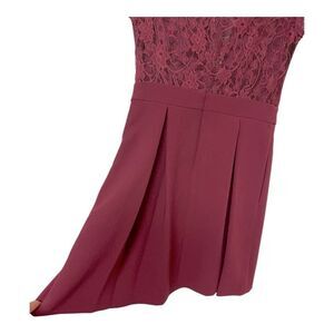 Length: 34”Chic burgundy dress with lace detailing. Perfect for special occasions.