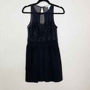 BCBGeneration Lace Top Pleated Skirt Dress Black Size 0 Cocktail Sheer Pockets