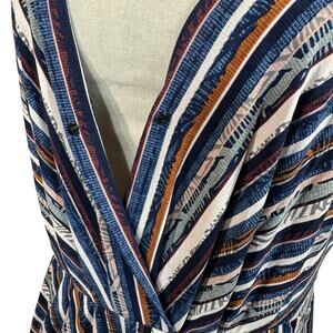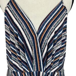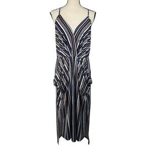 BCBGeneration Large Midi Dress Striped Halter V-Neck Pockets Stretch Hi-Low Hem