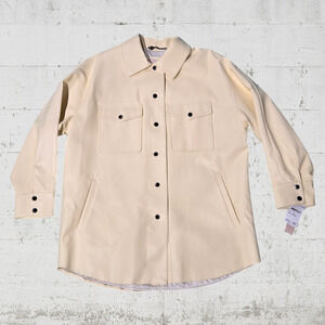 BCBGeneration Lemon Yellow Button Front Oversized Vegan Leather Jacket Size XL