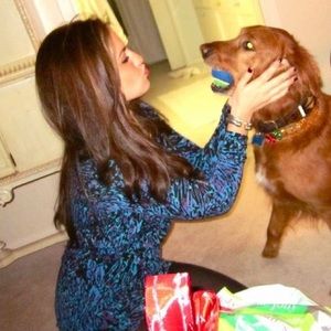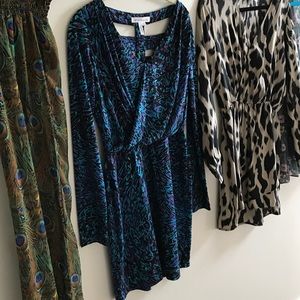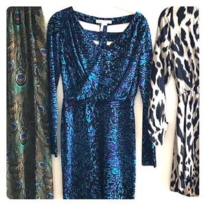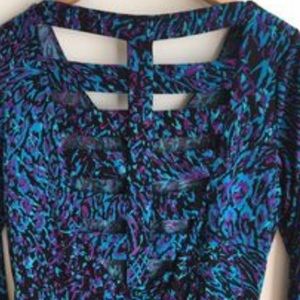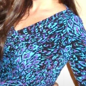 Women's Blue Purple Haze Leopard Print Jersey Long Sleeve Dress with a cage-back. (Super chic!) I attached some pictures of me wearing it with black panty hose/tights for Christmas one year. It's sooo cute. stretchy, comfy and OH SO flattering. In perfect condition!👌🏻