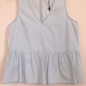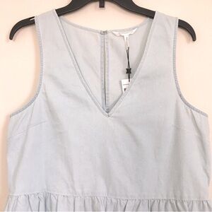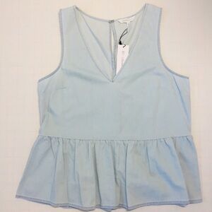BCBGeneration Light Chambray V-neck Sleeveless Flounce Hem Top Blouse