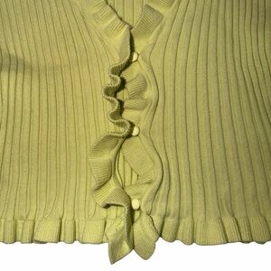 Stylish ribbed sweater with ruffle details. Bright lime hue.