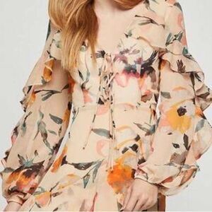 BCBGeneration Long Sleeve Ruffled Floral Dress Size 4