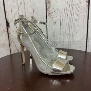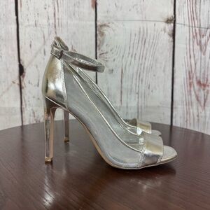 BCBGeneration Metallic Silver Open Toe Ankle Strapped Mesh side High Heels 7 GUC