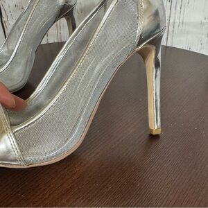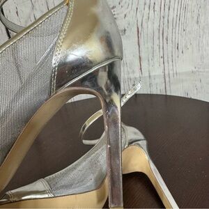 BCBGeneration Metallic Silver Open Toe Ankle Strapped Mesh side High Heels 7 GUC