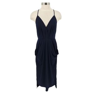 BCBGeneration Midi Dress Navy Sleeveless Keyhole Back Drape Pockets Medium