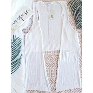 BCBGeneration Mixed Gauge Racer open front off white knit vest Size Small NEW