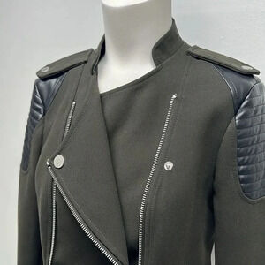 BCBGeneration Moto Jacket Coat Biker Faux Leather Zip Up Green Black Size Small
