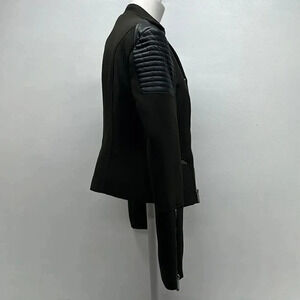Gorgeous black Moto jacket with faux leather shoulders and silver hardware.
