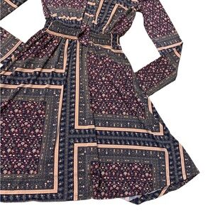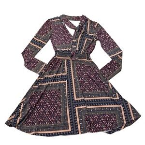 BCBGeneration | Multi Print Long Sleeve Size Small Dress Neck Tie Print