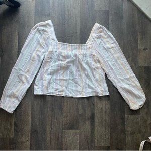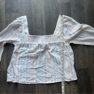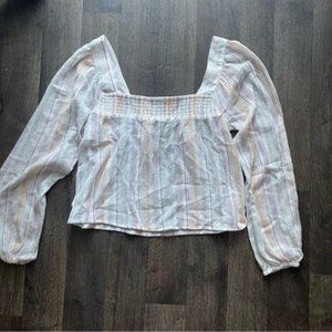 BCBGeneration Multicolor Square Neckline Smocked Long Sleeve Top Size M