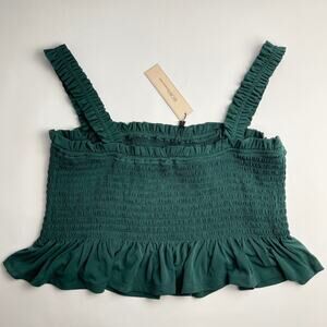 A stylish sleeveless, smocked top is perfect for a summertime look.