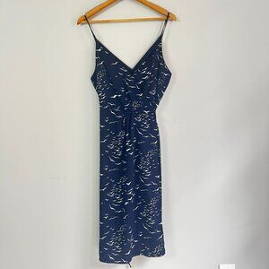 BCBGeneration Navy Bird Print Wrap Dress Spaghetti Straps 12 NWT