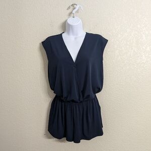 BCBGeneration Navy Blue Mini Romper Slouchy Cross Front Short Drop Sleeve XS