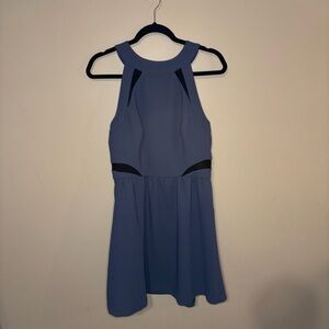 bcbgeneration dress • blue fit and flare dress • mesh cutout dress • cocktail dress • womens party dress • bcbg mini dress • size 10 womens dress • wedding guest outfit • modern evening dress
