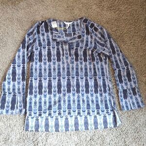 BCBGeneration New Women's Size Large Long Sleeve Blue Design Flowy Tunic Top