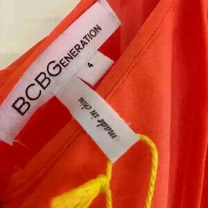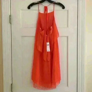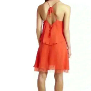 BCBGeneration Orange Ruffle Layered Square Neck Empire Waist Cocktail Dress