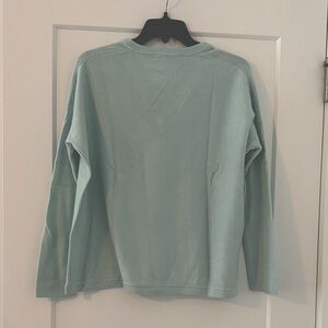 Elegant soft blue oversized boxy knit top. Ideal for everyday style. Size XS/S.