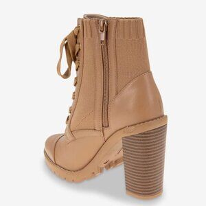 BCBGeneration PILAS Women's Block Heel Lug Sole Lace-Up Booties Tan Size 7
