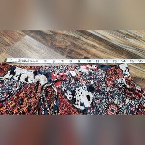 Vibrant multicolor pants by BCBGeneration. Features a striking pattern with red, blue, and white hues, has pockets. Very comfortable, silky material. Excellent condition.