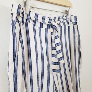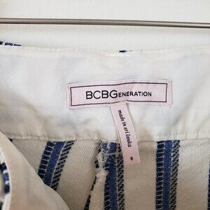 BCBGeneration Pants 8 White & Blue Striped Woven Striaght Leg Business Casual