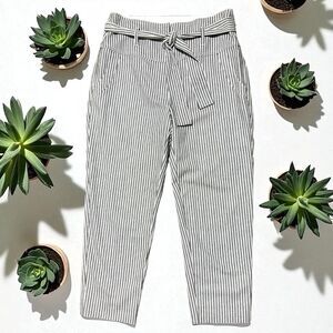BCBGeneration Pants Sz. 6 High Waisted Cropped With Belt White & Blue Stripes