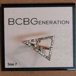 This fashionable goldtone ring features faux diamonds set into a unique triangle shape.
