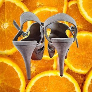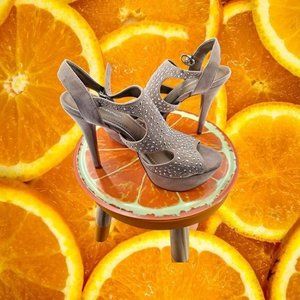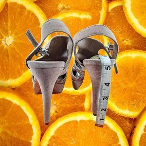 BCBGeneration Peep Toe Tan High Heels With Crystals Size 8.5