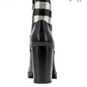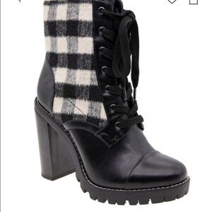 BCBGeneration Pilas Black/Ivory Block Heel Boot Plaid Fall. Never Worn, only tried on