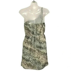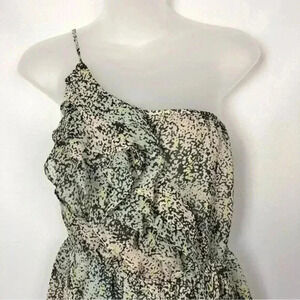 BCBGeneration Pink & Blue Dot Ruffle Printed One Shoulder Mini Dress S