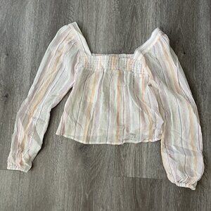 BCBGeneration Pink Chiffon Smocked Striped Square Neck Blouse size XS