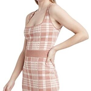This BCBGeneration tank top showcases a stylish cropped design in a delicate pink shade, offering a modern and chic look. The fitted silhouette and sleeveless cut make it perfect for layering or wearing on its own. Its structured knit material adds a touch of elegance to any ensemble.