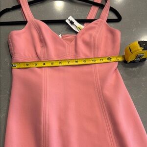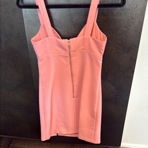Chic pink mini dress. Features a fitted silhouette. Perfect for any occasion. Small spot on dress. Pic added.