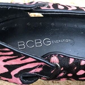 BCBGeneration pink and black pattern heels with a small detail on the side of the back.  Gently used...size 10B/40...no flaws noted...very good condition...see photos for details...120619