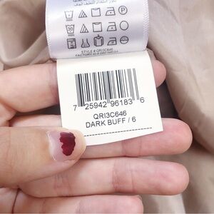 Fabulous mini skirt by BCBGeneration. Classic pleated style in "Dark Buff" (tan & black horizontal stripes). Fitted waist, pockets, fully lined, back zip. Waist 27.5“, length 17“. Size 6, excellent preowned condition.