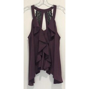 BCBGeneration Plum Ruffle Lace Tank Top - Small