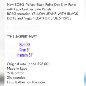 BCBGeneration Polka Dot Skinny Pants - Black and Canary Yellow Size 28
