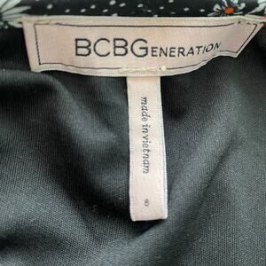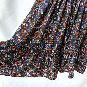 BCBGeneration Boho Ditsy Floral Tiered Mini Dress in black blue orange multicolor dark floral print.