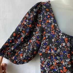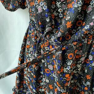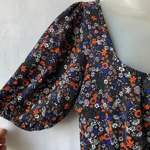 BCBGeneration Puff Sleeve Boho Floral Dress 8 Blue Orange Cottagecore Ruffle Hem
