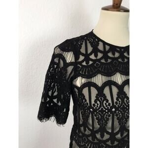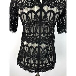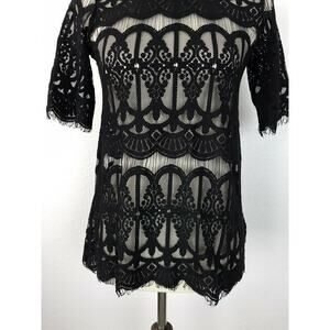 BCBGeneration Pullover Sheer Lace Fringe Trim Top